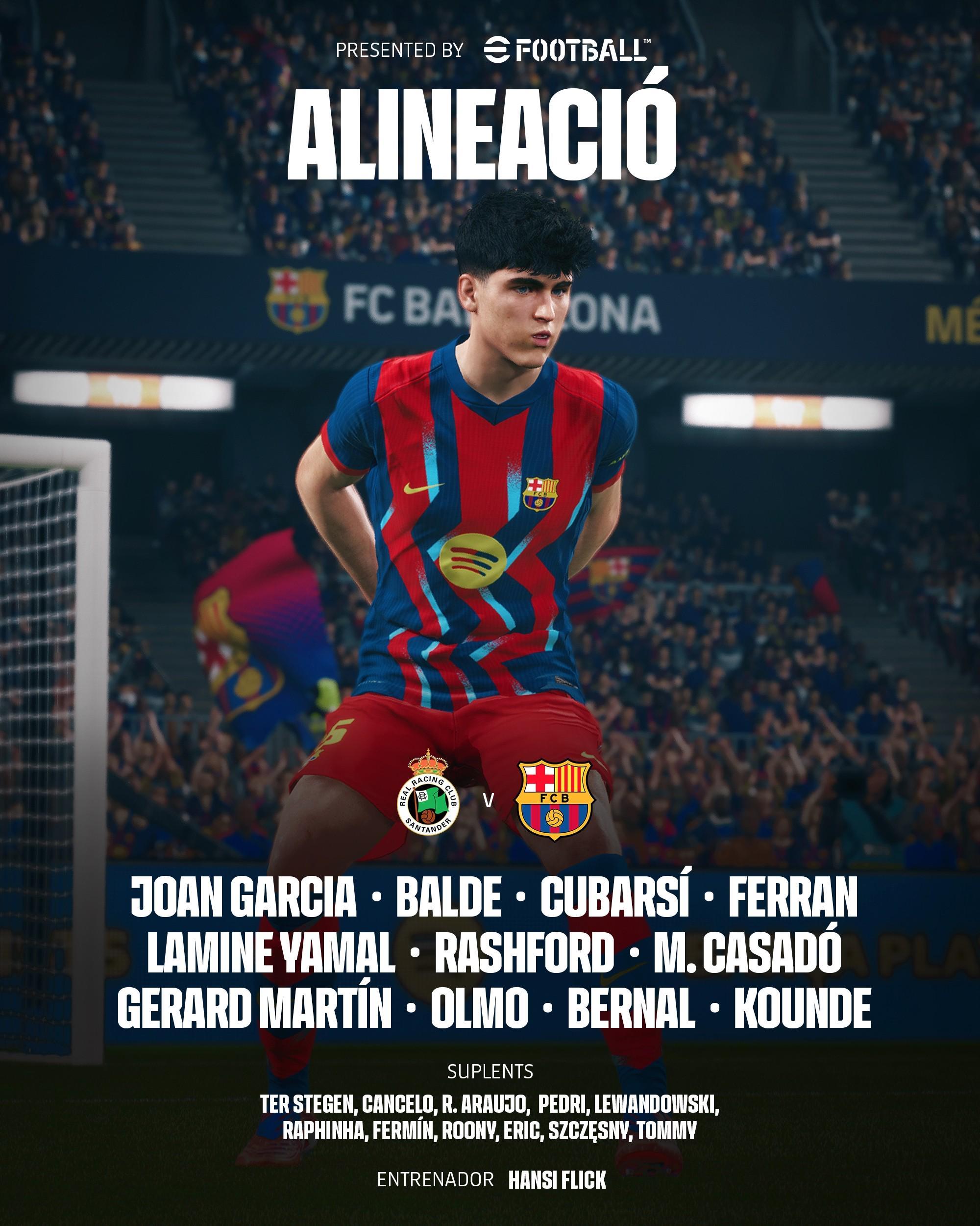 • 巴萨客战桑坦德:亚马尔、拉什福德首发,奥尔莫、费兰出战